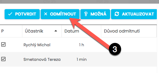 Pokud odmítnete účast, budete vyzváni k zadání důvodu odmítnutí (4).