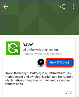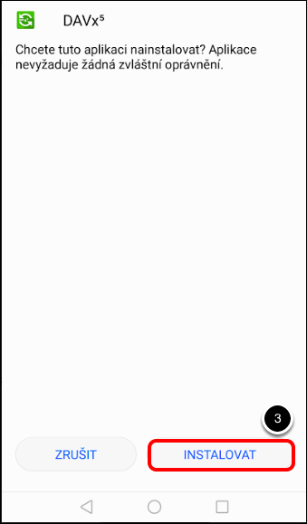 Instalaci potvrďte ťuknutím na Instalovat (3). Následně dojde k instalaci potřebné aplikace DAVx⁵.