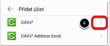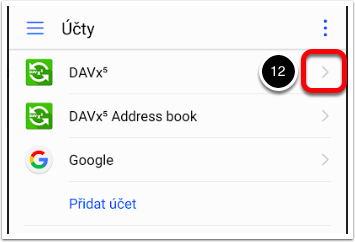 Po zobrazení této stránky kliněte na DAVx⁵ (12).