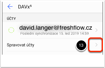 Otevře se Vám nastavený synchronizační účet a ťukněte na Spravovat účty (13).