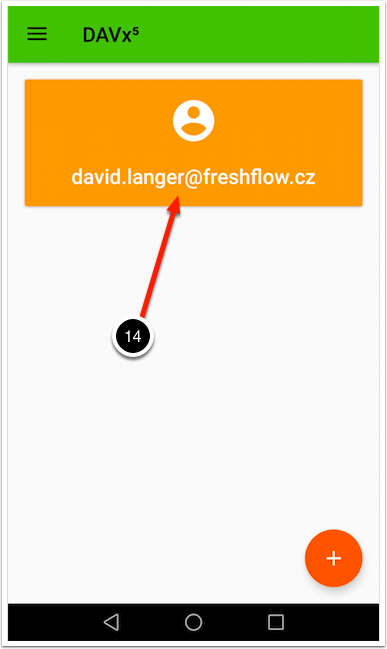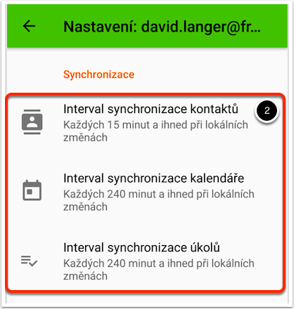 Synchronizační účet je vytvořen a nyní je pořeba jej správně nastavit. Pro nastavení ťukněte na Vaše přihlašovací jméno (14).