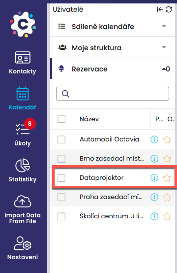The name of the room/resource is very important, as the resource will be displayed under this name in the list of resources. We therefore recommend carefully choosing a name that will specify the given resource as precisely as possible, for example TOKOVO 7th floor – green meeting room, or Ruby House, office Jan Novák.