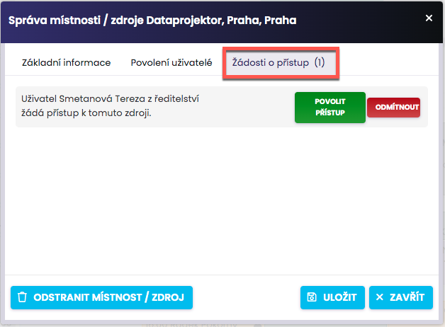 In the Access Requests tab, your current requests will be displayed. You can grant access to this resource by clicking Allow access or Reject. Confirm the settings by clicking Save.