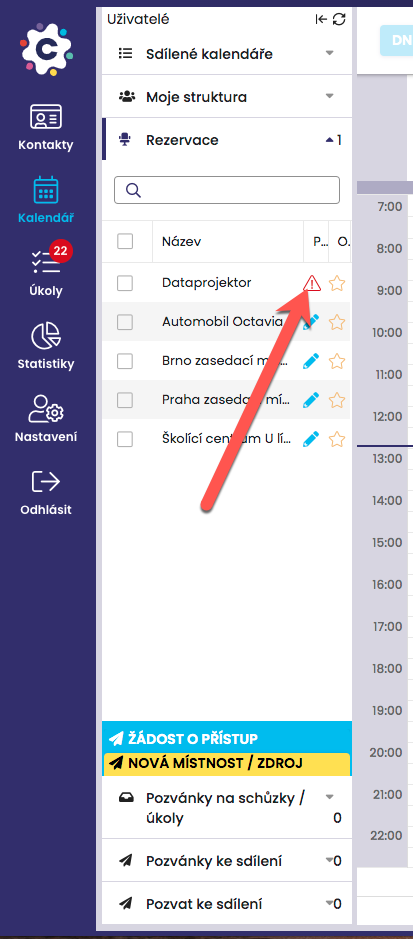 After opening the Room/Resource Reservations tab that contains a new request, a red triangle will be displayed next to the resource to which the new request relates, indicating that someone is requesting access to this resource. By clicking on it, a new window will appear in which you can approve or reject the access request.