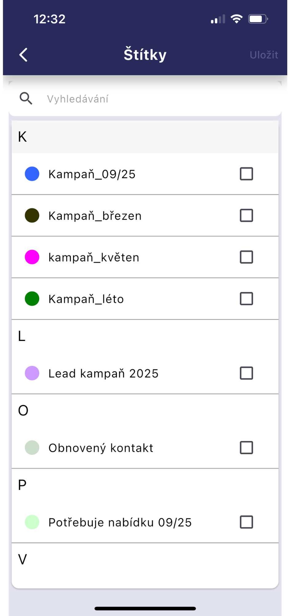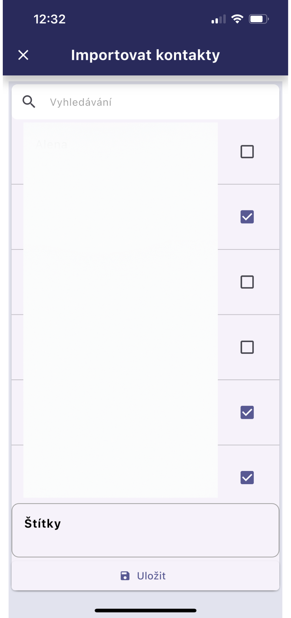 Zaškrtnite tie kontakty, ktoré chcete importovať. Ak máte nejaké štítky, ktoré chcete ku kontaktom okamžite pridať, môžete ich tiež vybrať a kontakty sa uložia aj so štítkami.