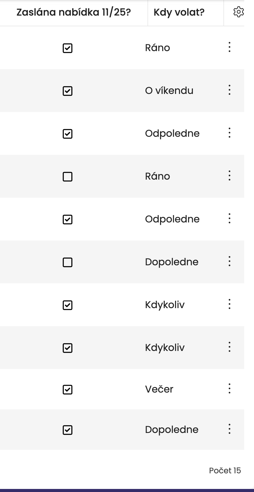 Môžete si zobrazovať aj údaje, ktoré máte definované ako vaše vlastné pole. Vlastné polia sa zobrazujú úplne napravo, až za ozubeným kolieskom.